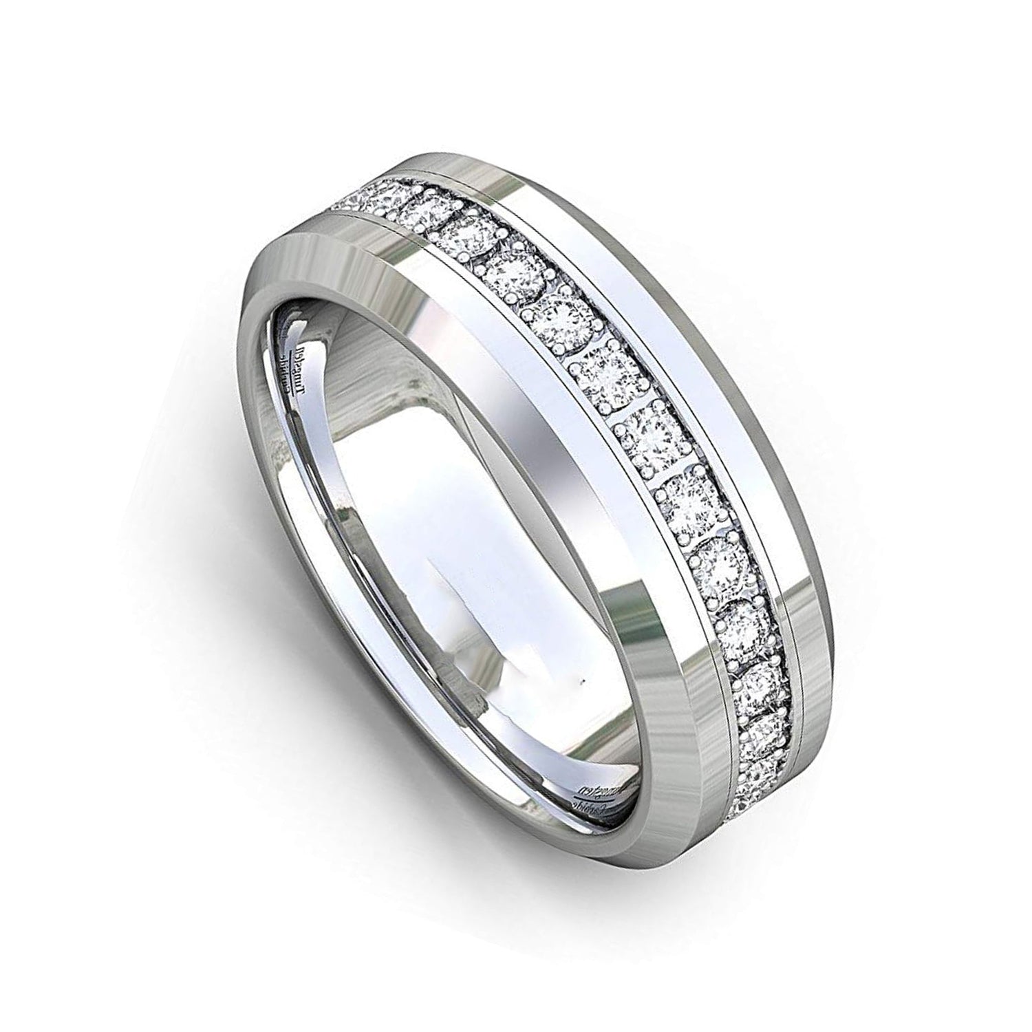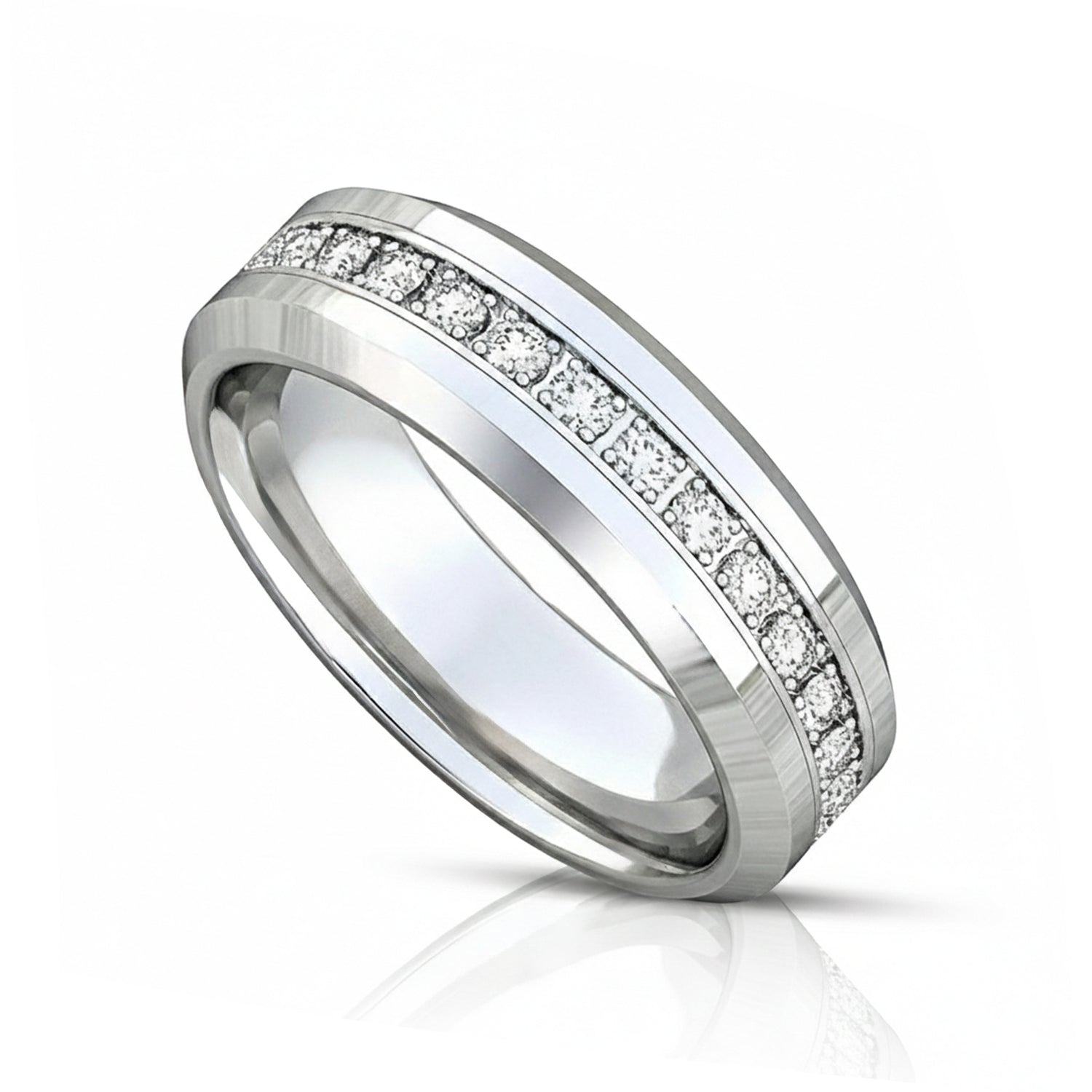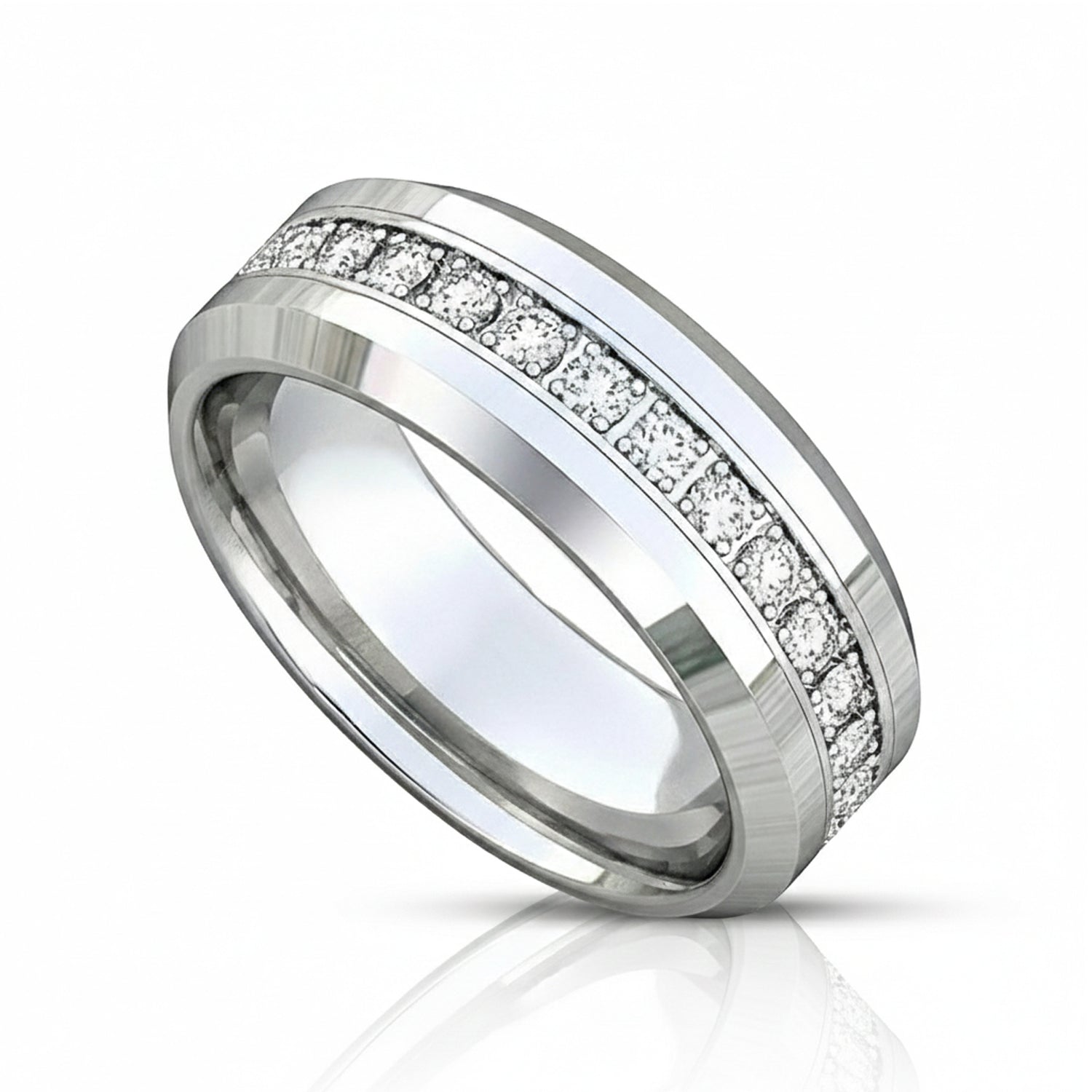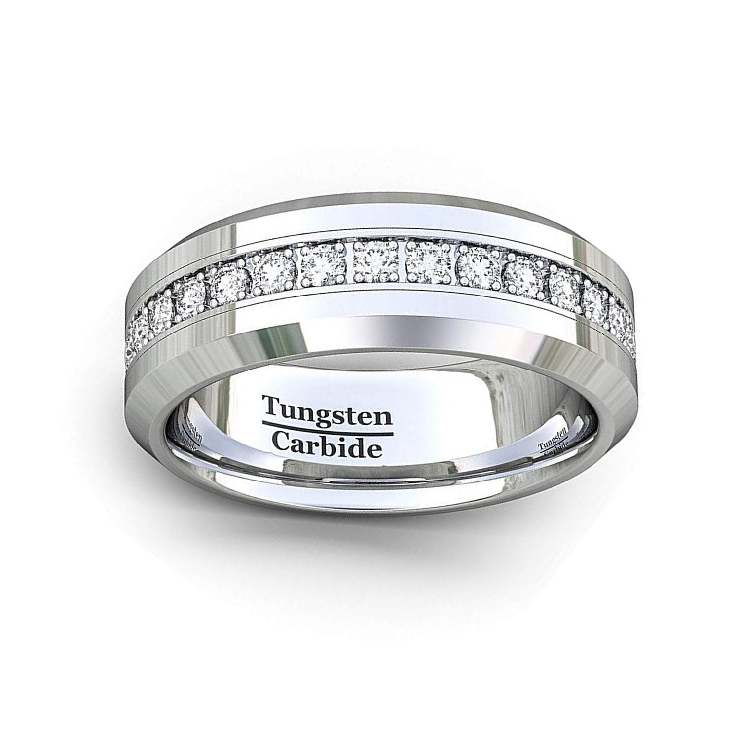 8mm - Tungsten Carbide Wedding Band Fully Stacked Cubic Zircon Beveled Edge Comfort Fit