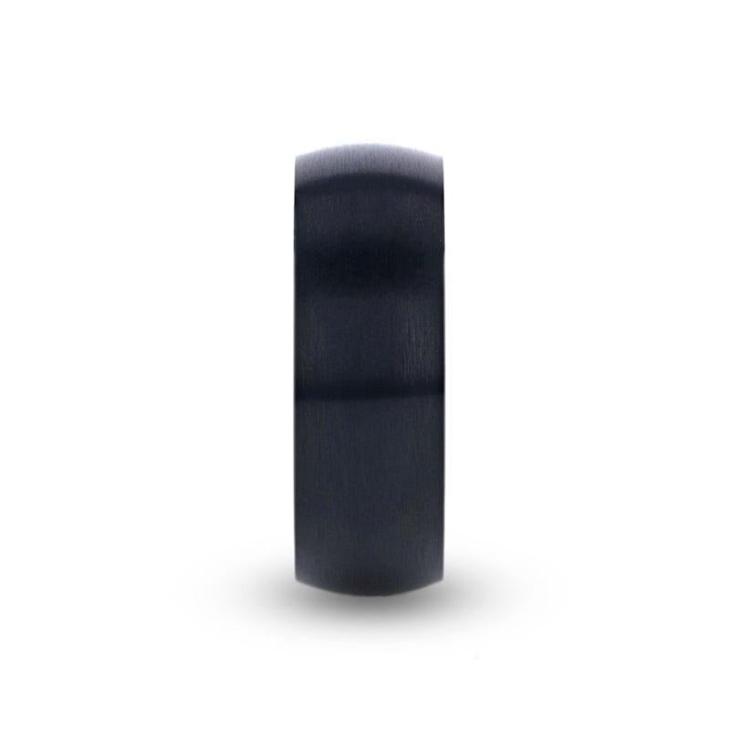 MARAUDER Domed Brushed Finish Black Titanium Mens Wedding Band - 6mm & 8mm