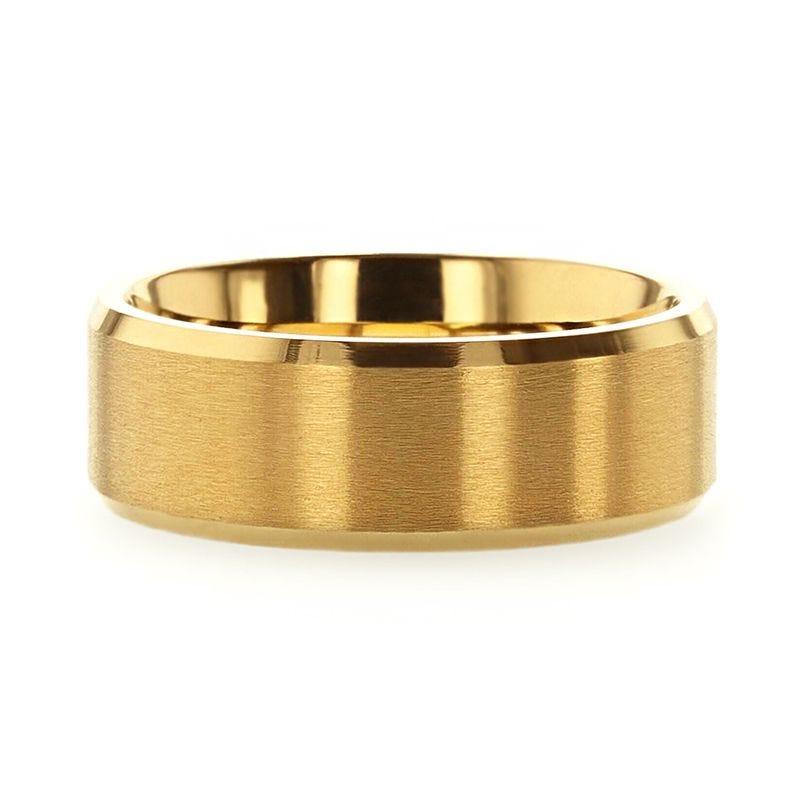 RADIATE Gold-Plated Titanium Flat Brushed Center Mens Wedding Ring with Beveled Polished Edges - 8mm