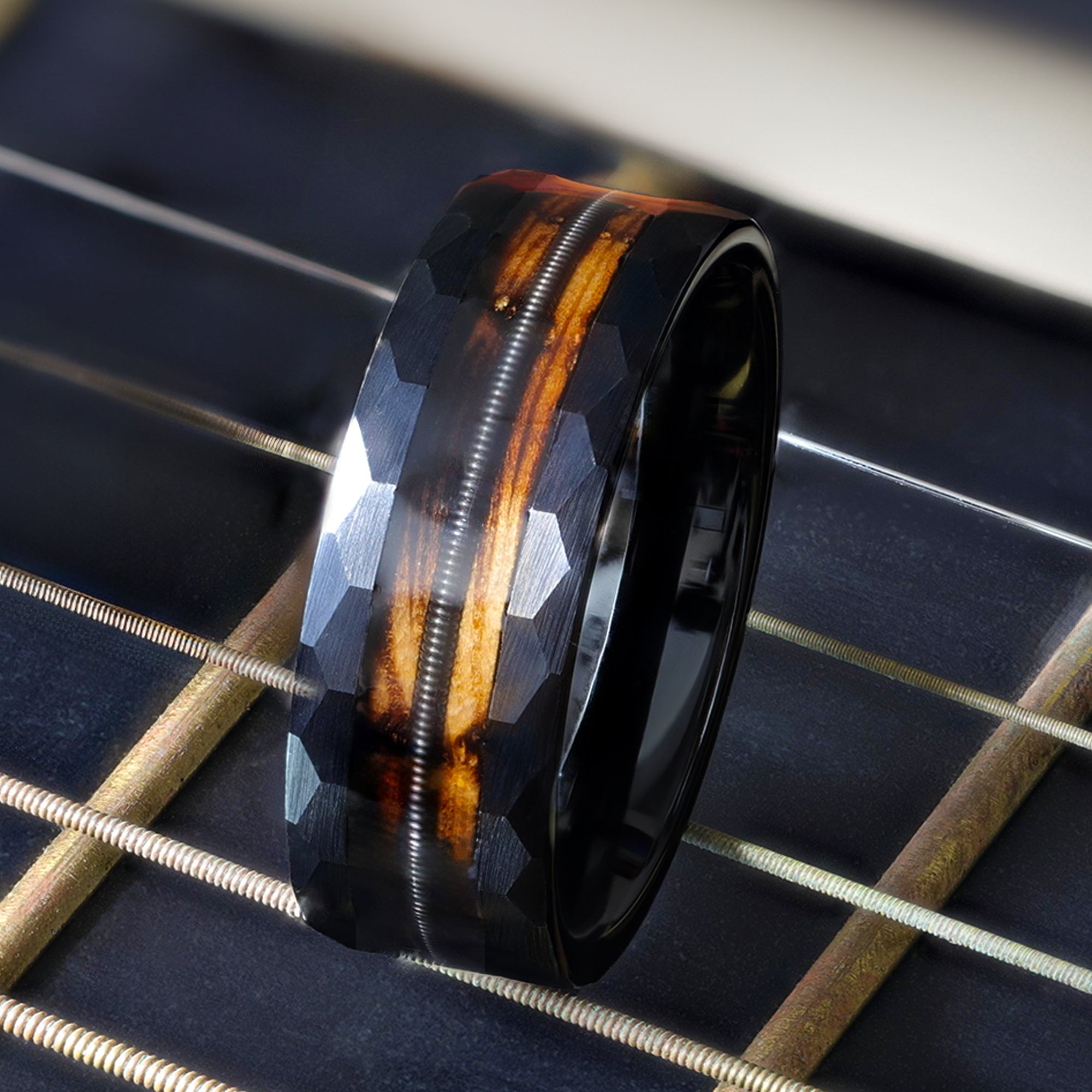 This ring is perfect! Perfect for a whiskey and guitar enthusiast! The tungsten is sleek, handsome and durable! This does not disappoint!