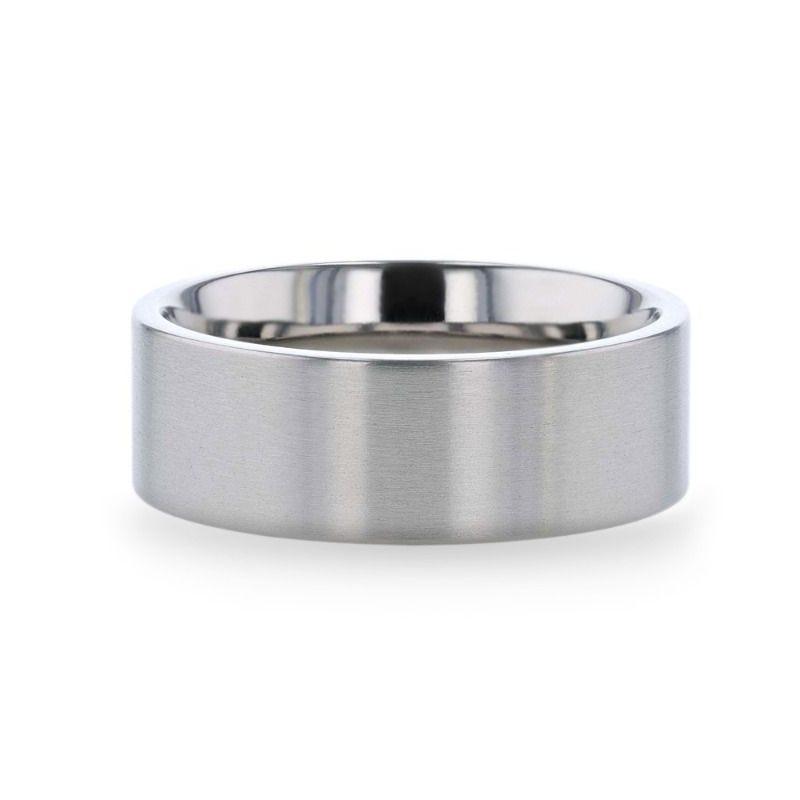 SOLAR Flat Profile Brushed Finish Mens Titanium Wedding Band - 6mm & 8mm